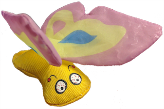 These 3" Organic Catnip Stuffed Butterflies are full of bright colors and crinkly sounding wings! Their petite size are perfect for a cat to haul around and kick. The fabric is soft and durable, and the catnip inside gives off a strong cat'eriffic aroma.