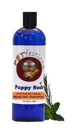 100% Natural and Organic dog shampoo effectively cleans and protects fur and skin. pH balanced for a dog's fur & skin, and is excellent at controlling dandruff, allergies, itchy spots, and greasy fur. Will soften fur and is safe to use on sensitive skin.