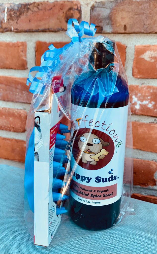 Get your shampoo and scrub brush in one! This combo will come packaged together and will include a 16oz Puppy Suds of your choice and a large blue natural rubber scrub brush.
